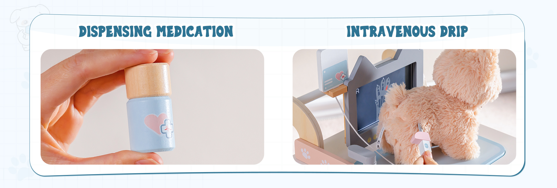 💉Fomenta la Creatividad y la Empatía - Este set de juego de veterinario anima a los niños a cuidar de sus "pacientes", fomentando la empatía, la responsabilidad y la comprensión de la importancia de la salud animal a través del juego imaginativo.