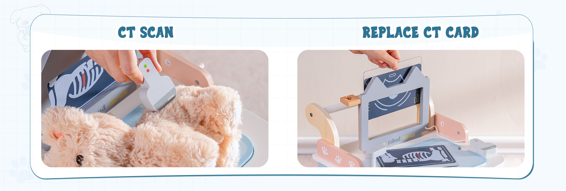 🩻Pantalla de Rayos X Interactiva para Diagnóstico Práctico - La pantalla de rayos X permite a los niños realizar chequeos simulados y explorar los "interiores" de sus pacientes animales. ¡Es una manera perfecta de introducir a los niños en el mundo del cuidado veterinario!