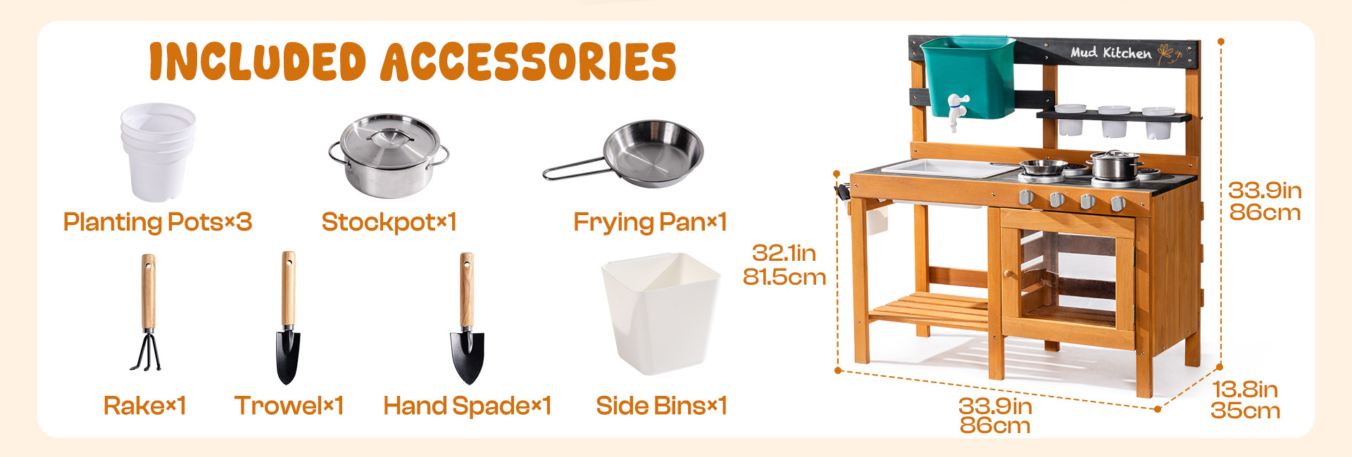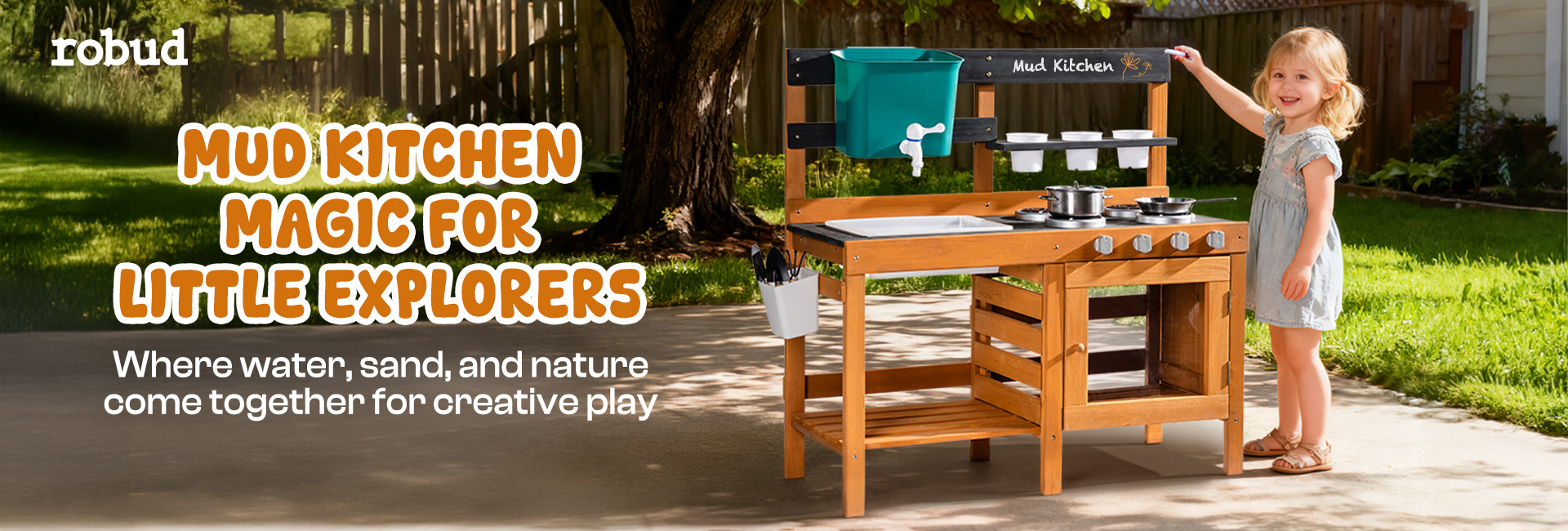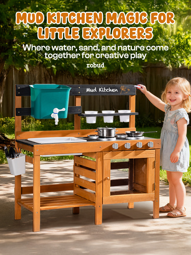 - Duradero y seguro para niños: Diseñado para durar, esta cocina de barro para niños al aire libre está fabricada con madera natural con bordes lisos y lijados y acabados no tóxicos. Resiste el desgaste y las inclemencias del tiempo, lo que la hace ideal para aventuras de cocina de barro al aire libre durante todo el año. La estructura robusta y los materiales seguros aseguran que los padres puedan relajarse mientras los niños juegan libremente.