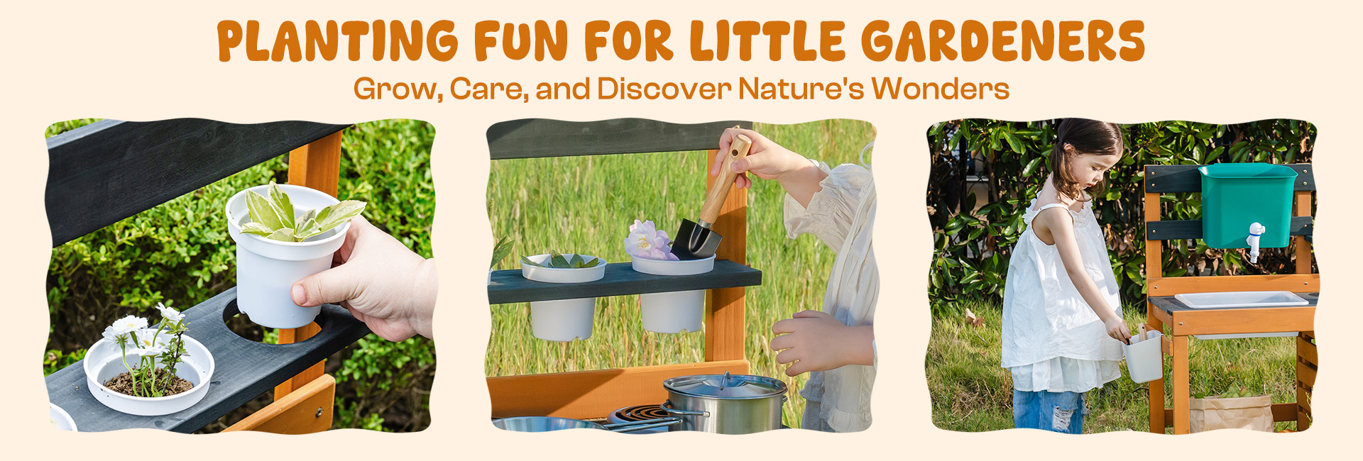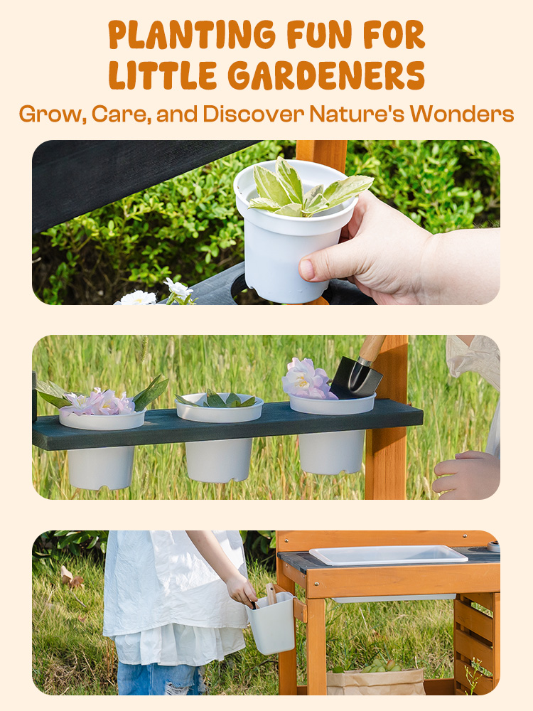 - Diversión y Aprendizaje Versátiles al Aire Libre: La cocina de barro para niños de ROBUD es más que una simple cocina de juguete; ¡es una estación sensorial todo en uno! Los niños pueden simular cocinar con perillas y ollas que hacen clic de manera realista, excavar en juegos sensoriales de barro o arena, e incluso intentar plantar con 3 herramientas de jardinería y 3 macetas. Esta cocina de juego al aire libre apoya el juego de roles creativo, el desarrollo de habilidades motoras finas y la diversión colaborativa en el patio trasero o jardín.