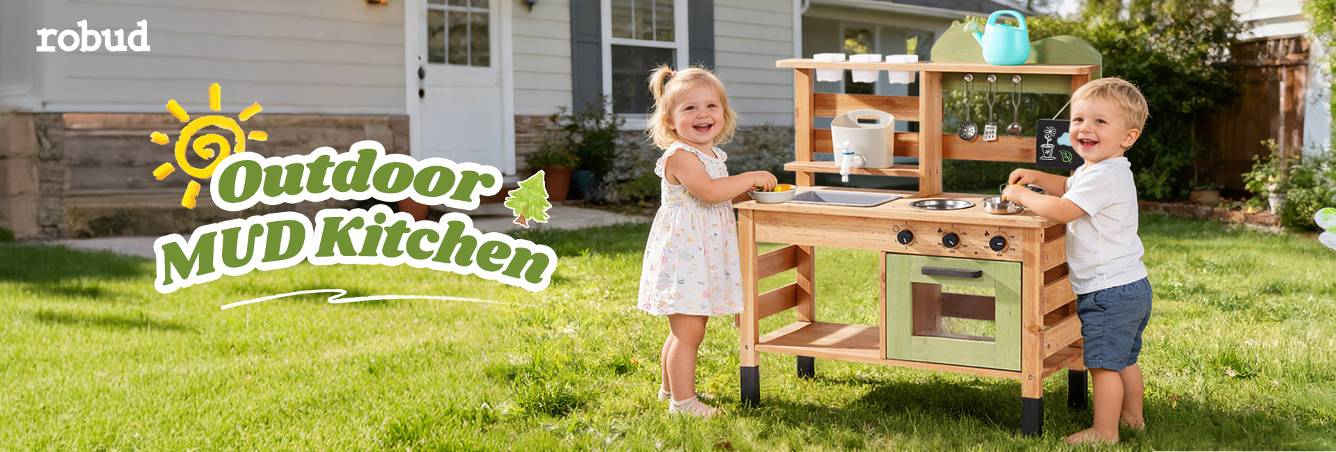 - 【Experiencia de Cocina de Barro Creativa】La Cocina de Barro al Aire Libre de ROBUD para Niños está equipada con su horno realista, un fregadero desmontable con tanque de agua equipado con grifo, una encantadora taza de plantación, diferentes herramientas de cocina completas y un espacio de almacenamiento organizado. Este diseño innovador fomenta la exploración sensorial utilizando materiales naturales como barro y arena, mientras mantiene una organización perfecta.