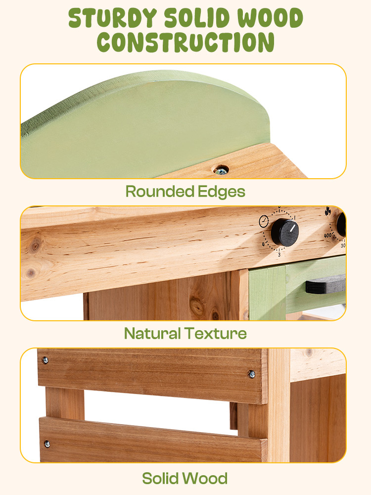 - 【Construcción Duradera y Segura para Niños】Construida con madera robusta tratada para el clima, esta Cocina al Aire Libre para Niños combina bordes redondeados, recubrimientos no tóxicos y una estabilidad sólida como una roca. Cumple con los estándares de seguridad ASTM a través de pruebas de seguridad exhaustivas, brindando a los padres confianza y tranquilidad.