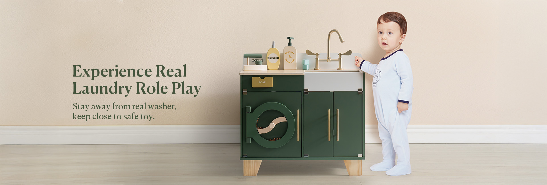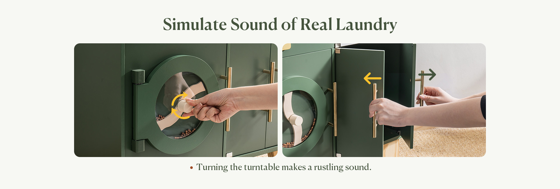 - 🛁 Delicia de Almacenamiento Interactivo 🛁 ¡Descubre características de diseño inteligente que elevan la interacción y la organización dentro de este encantador conjunto! El armario de doble puerta debajo del fregadero ofrece amplio espacio de almacenamiento para juguetes y elementos esenciales de lavandería, promoviendo áreas de juego ordenadas y fácil acceso a los accesorios. Disfruta del diseño de rodillo interior de la lavadora que refleja los procesos de lavado de la vida real con un sonido crujiente y caprichoso, mejorando la experiencia de juego inmersiva e interactiva para tus pequeños.
