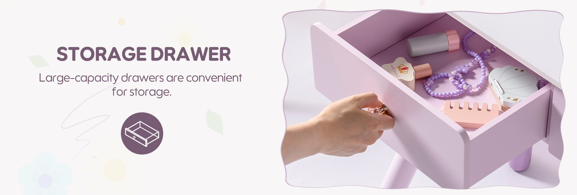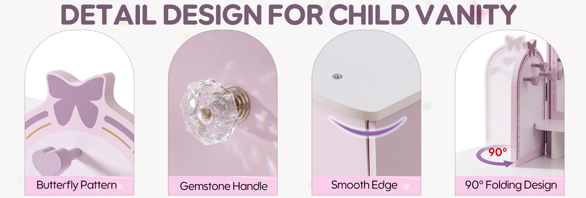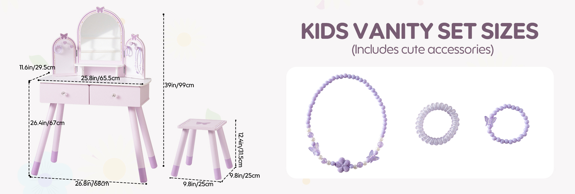 【Diseño Encantador】Nuestro tocador es tanto funcional como hermoso. La colisión de púrpura claro y púrpura oscuro crea una atmósfera maravillosa, que es perfecta para inspirar la imaginación de los niños.