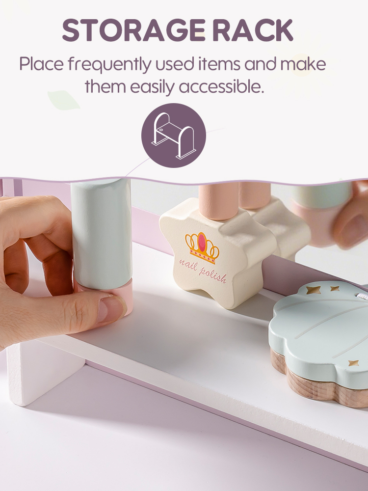 【Construcción Duradera】Nuestro tocador de juguete está hecho completamente de madera, que tiene mayor resistencia y durabilidad que las alternativas de plástico, asegurando años de uso confiable.