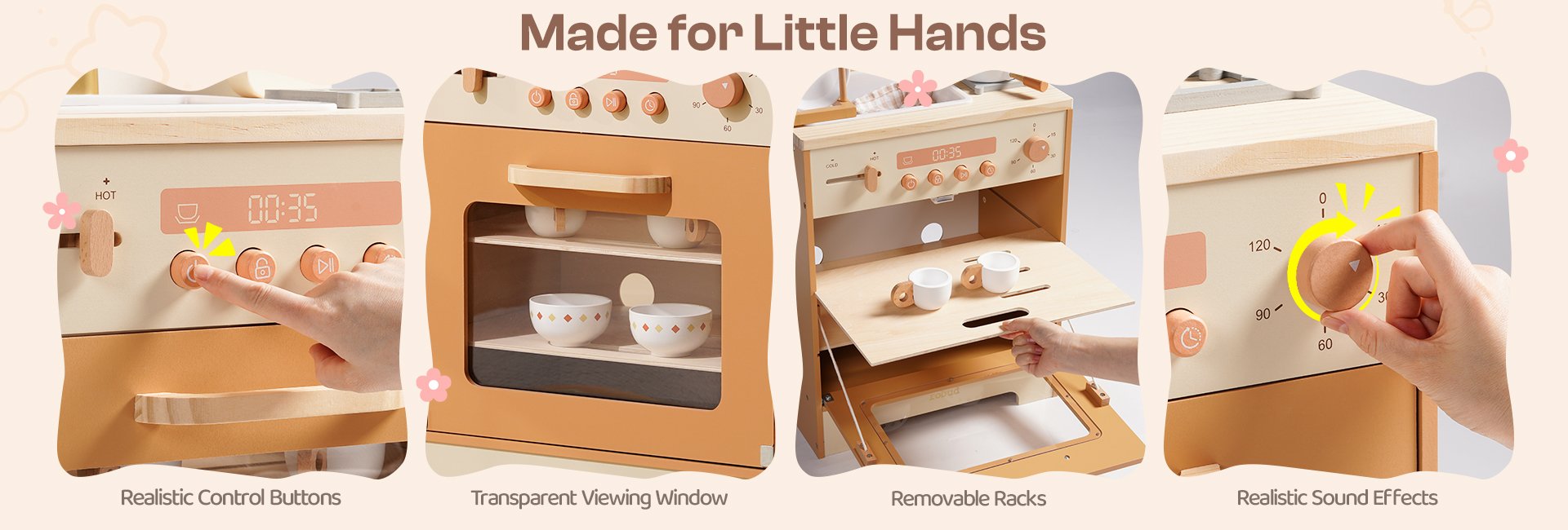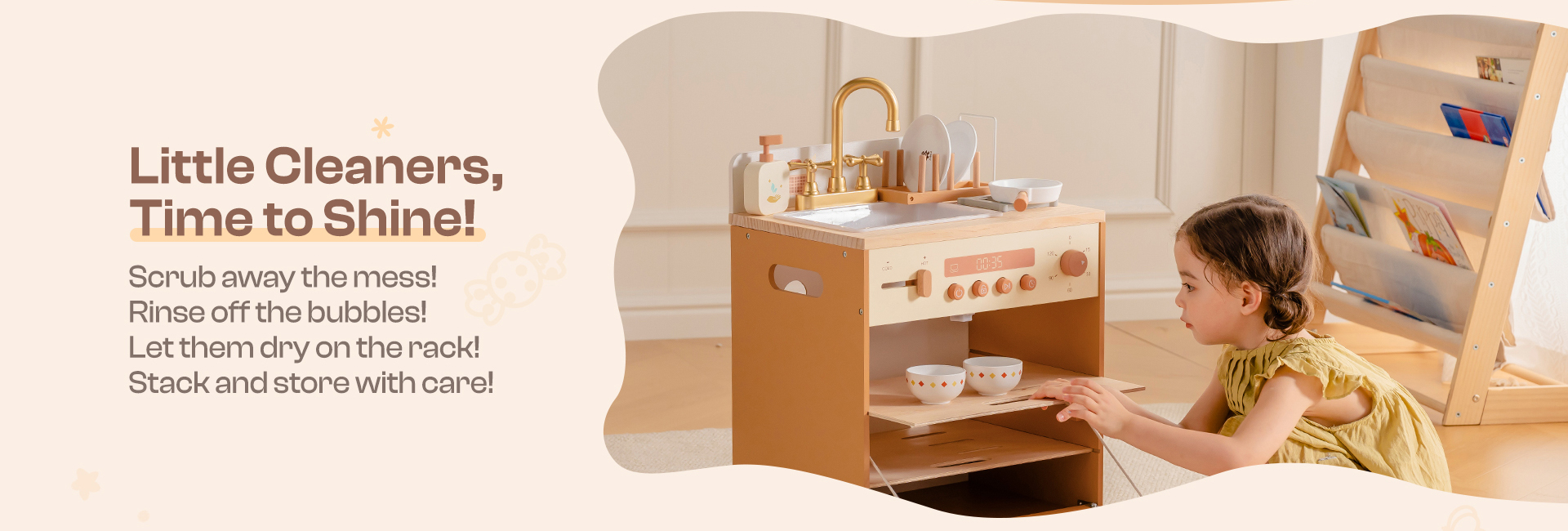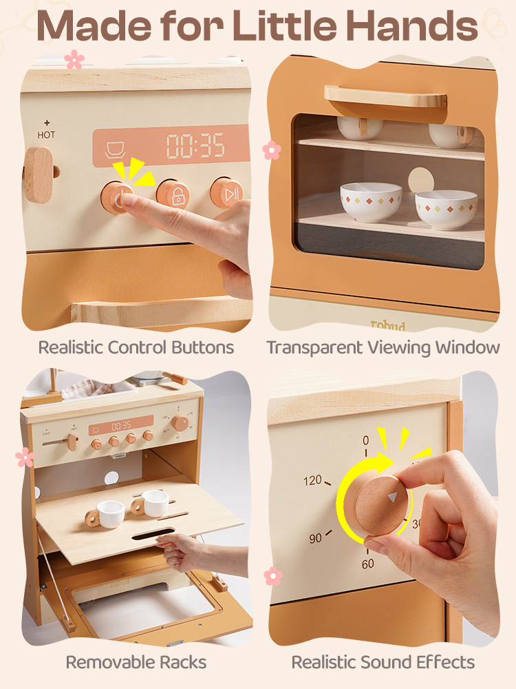 El uso de materiales de primera calidad es un sello distintivo de la marca ROBUD, lo que demuestra su incansable búsqueda de la calidad y la artesanía superiores. Este lavavajillas presume de un diseño meticulosamente elaborado, que combina una exquisita artesanía con una creatividad sin límites. Desde su adorable apariencia hasta sus funciones realistas, cada detalle ha sido cuidadosamente elaborado, permitiendo que los niños experimenten estilo y calidez mientras juegan. Este lavavajillas combina limpieza, almacenamiento y ajuste en un solo producto, equipado con perillas de sonido realistas que permiten a los niños experimentar la verdadera diversión en procesos de limpieza simulados. La combinación de múltiples funciones enriquece la experiencia de juego e inspira la creatividad de los niños.