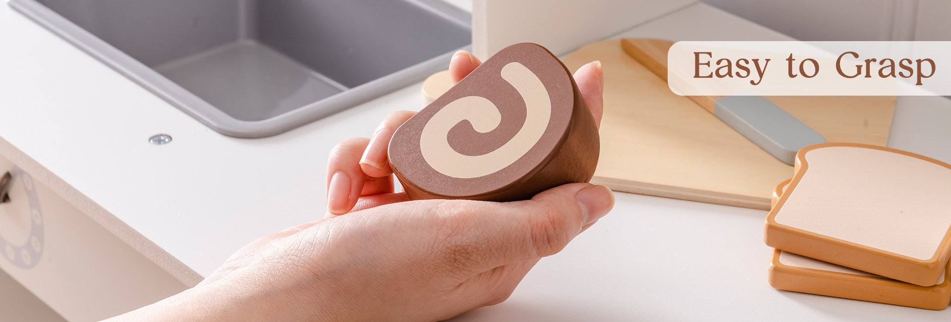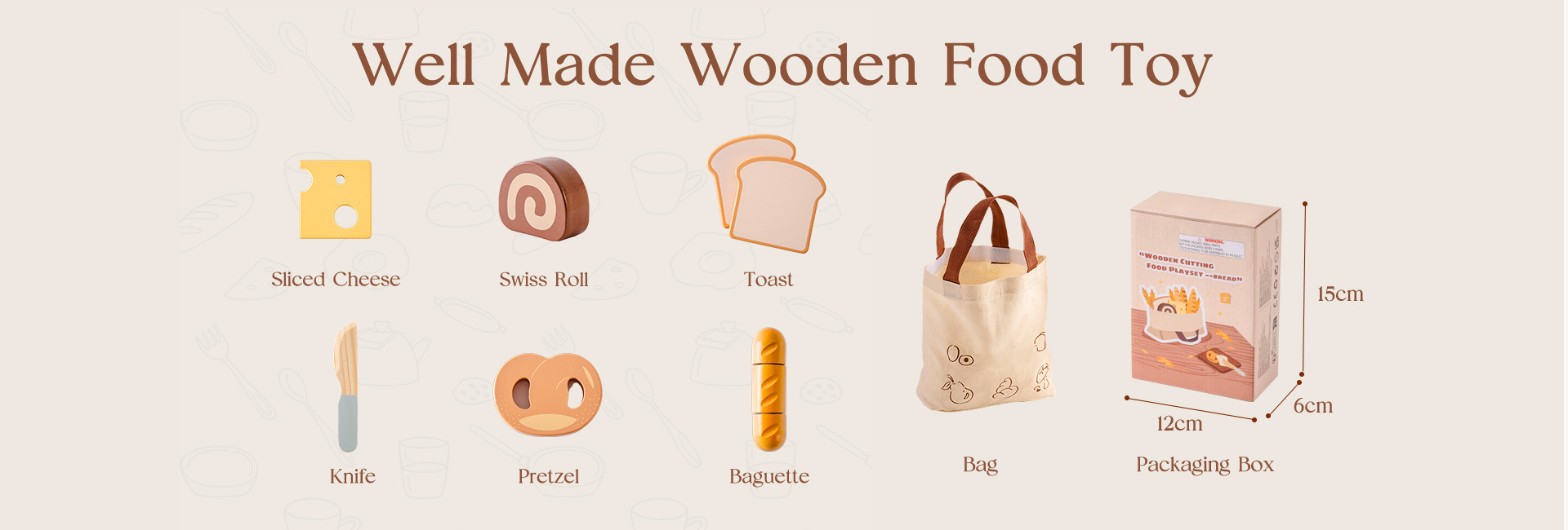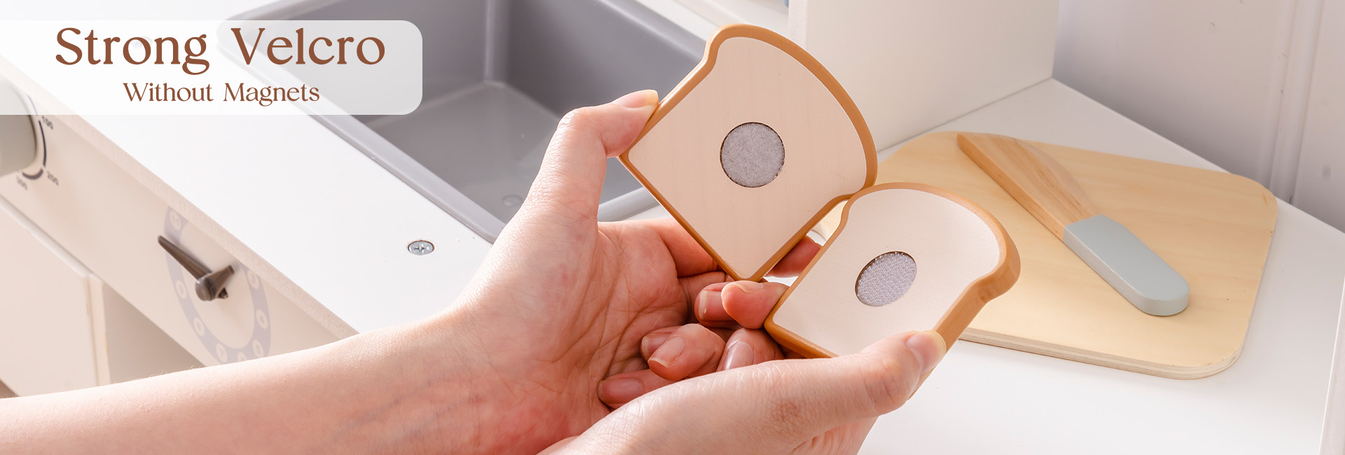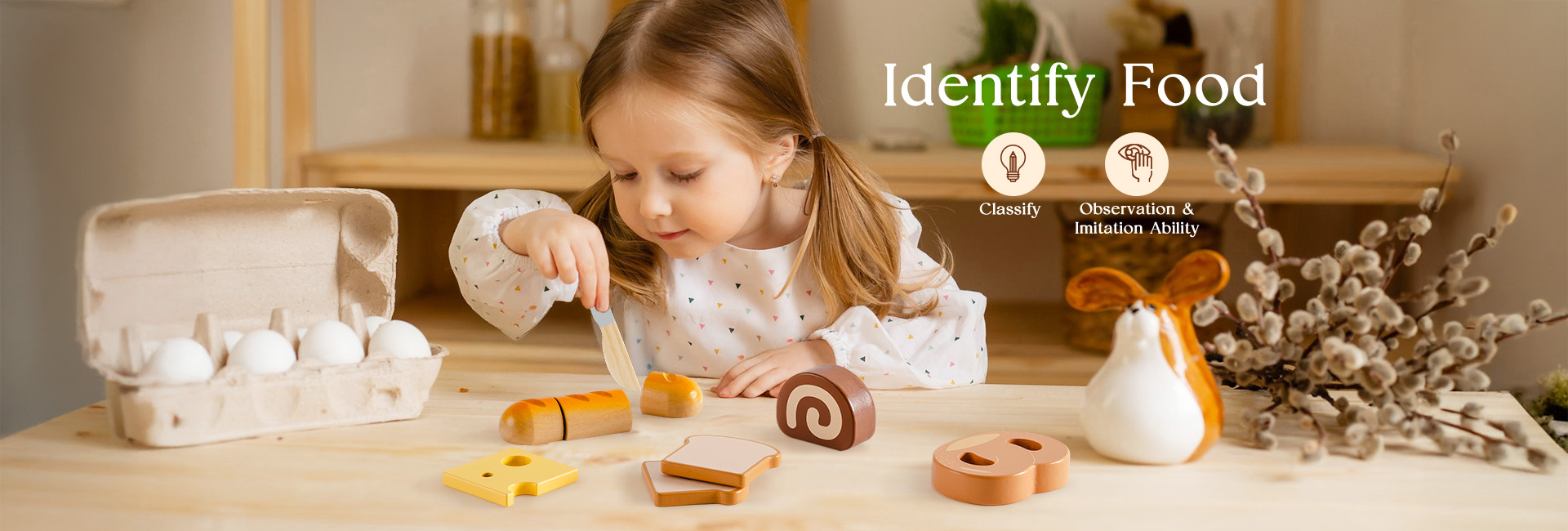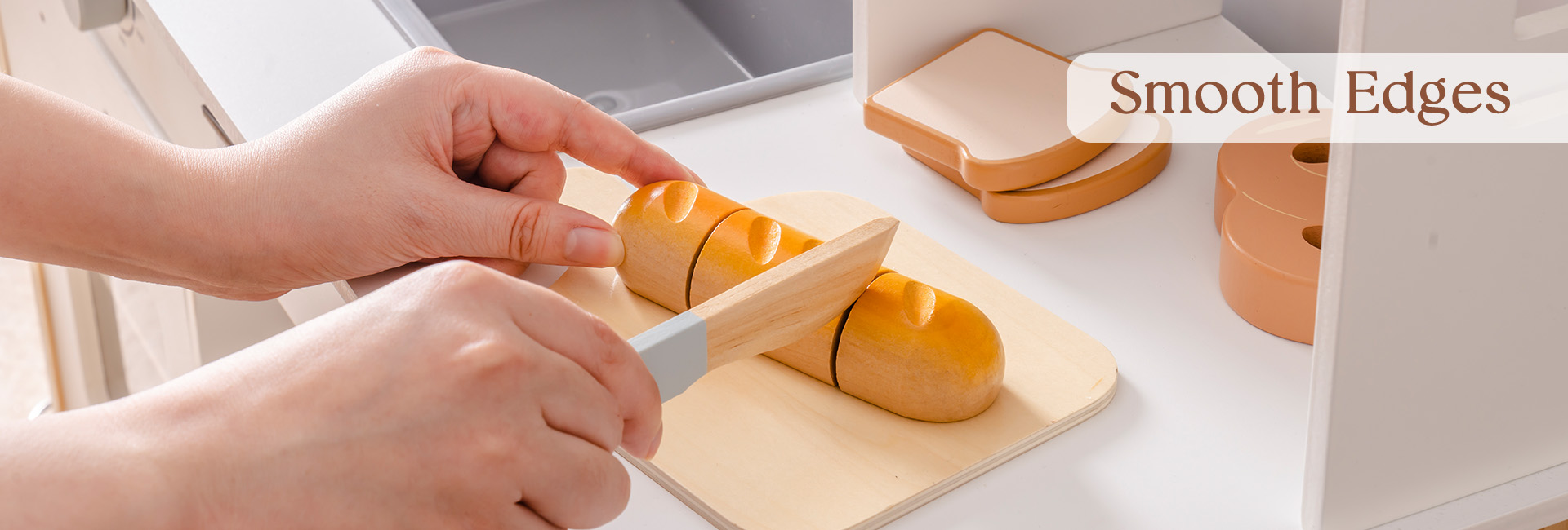 CONSTRUIDO PARA MANOS PEQUEÑAS: Cada pieza de este set de juguetes de comida de madera está hecha de madera de alta calidad y duradera, con bordes suaves y un acabado no tóxico. El cuchillo de madera es seguro para las manos pequeñas, ayudando a los niños a desarrollar habilidades motoras finas mientras juegan y aprenden.