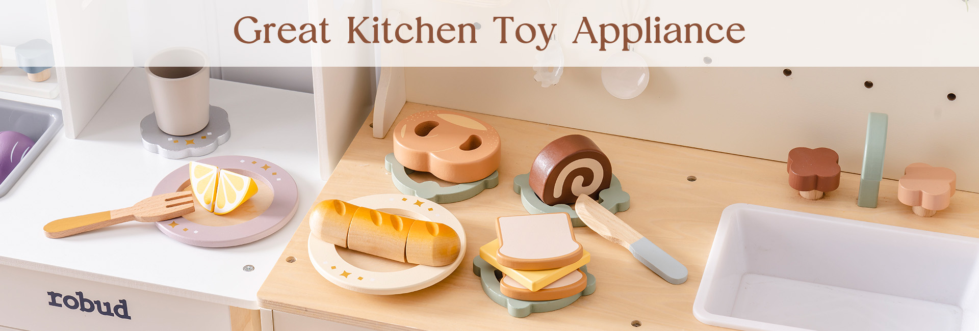 COOKING FUN UNLEASHED: El set de comida de juguete de madera ROBUD trae alegría al tiempo de juego de los niños con frutas realistas como sandía, uvas, naranja y pera. Incluye un cuchillo de madera para cortar de manera segura, fomentando el juego imaginativo para niños de 3 años en adelante. Una gran adición a cualquier cocina de juguete, cultiva la creatividad.