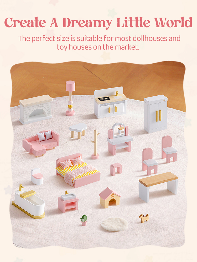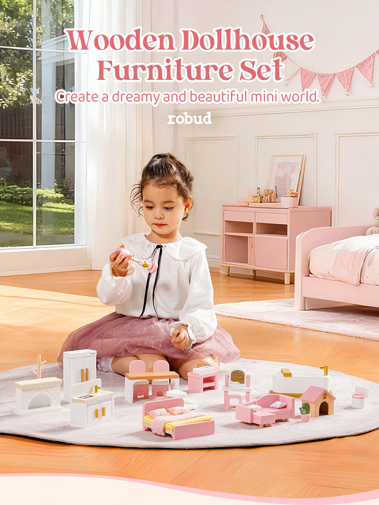UNA EXCELENTE OPCIÓN PARA REGALAR: Los muebles para casas de muñecas ROBUD no son solo un regalo excepcional para los niños; son una elección conmovedora que ilumina su infancia. Cada pieza de mobiliario meticulosamente elaborada sirve como un regalo único y encantador, trayendo alegría y creando recuerdos duraderos, ya sea para cumpleaños, festividades o ocasiones especiales. El conjunto de muebles empaquetado en una exquisita caja colorida, es el regalo perfecto para tu pequeño.