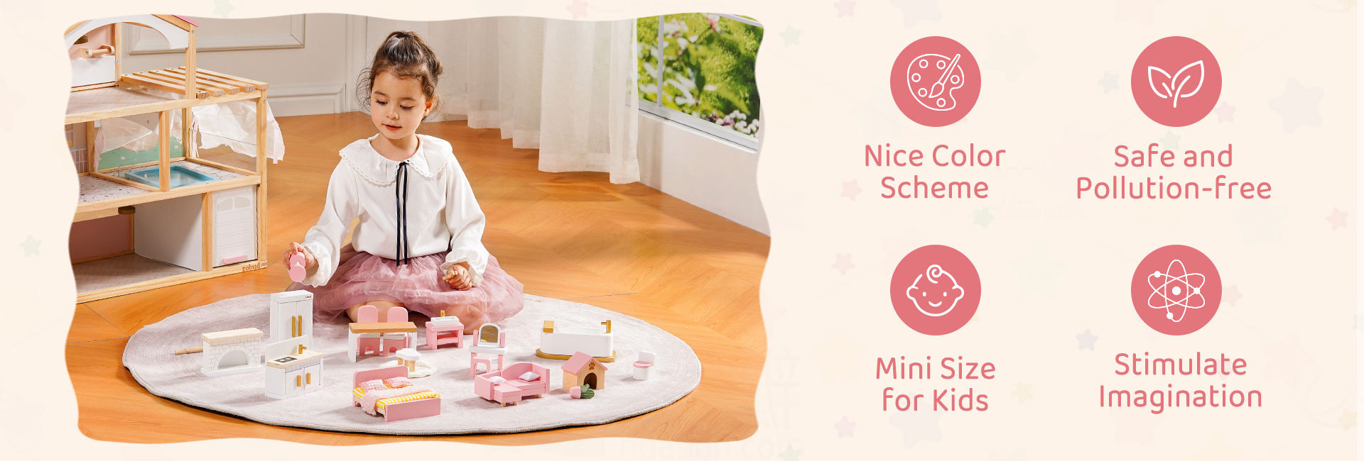 DISEÑO ADORABLE: Cada detalle incorpora diversión y creatividad, permitiendo a los niños sumergirse y explorar una diversión interminable. Desde colores suaves hasta formas lindas, todos tienen como objetivo encender la imaginación de los niños, haciendo que su tiempo de juego sea aún más alegre y encantador.