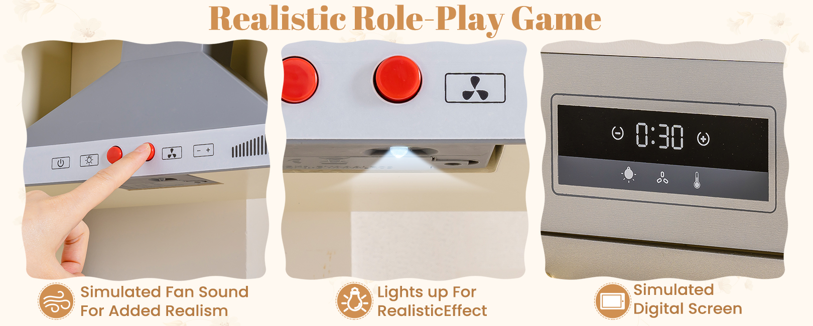 - LUZ Y SONIDOS DAN VIDA AL JUEGO DE ROL: Esta cocina de juguete cuenta con perillas vocales, una pantalla digital y sonidos de cocina simulados para hacer que el juego de simulación cobre vida. Los niños pueden "hornear", "lavar los platos" y "hacer la colada" como los adultos, despertando una imaginación sin fin.
