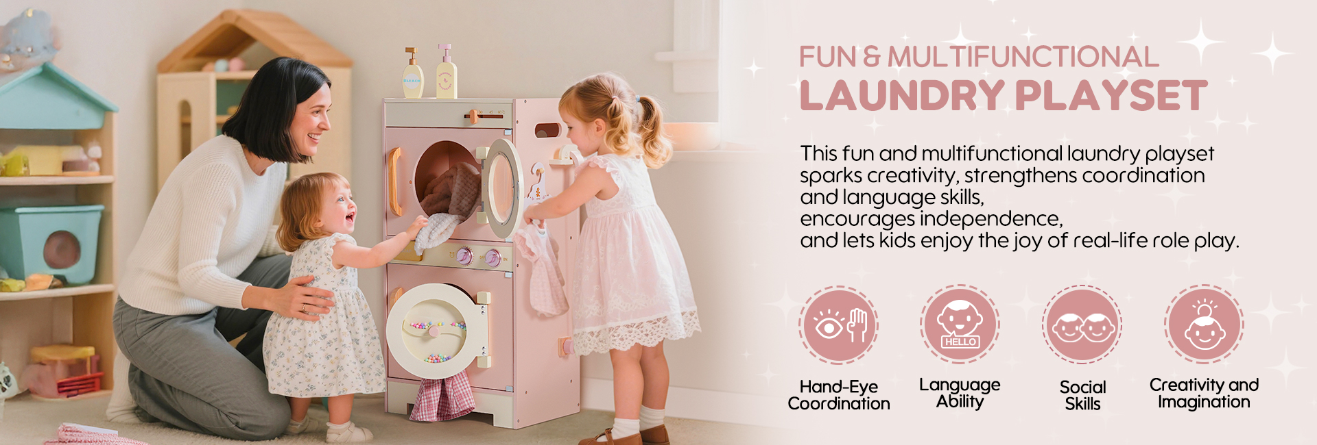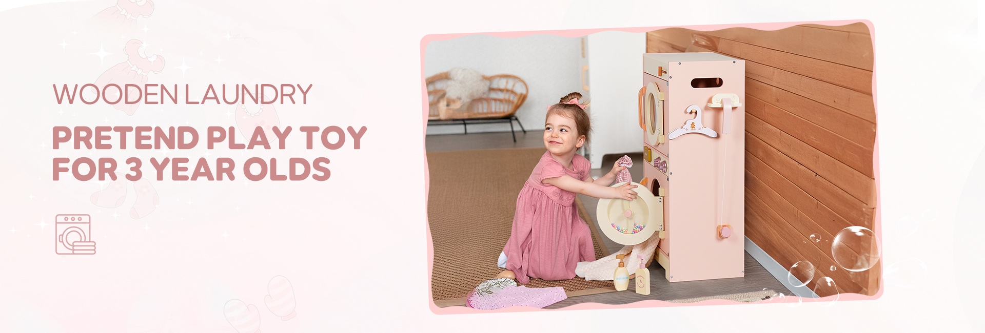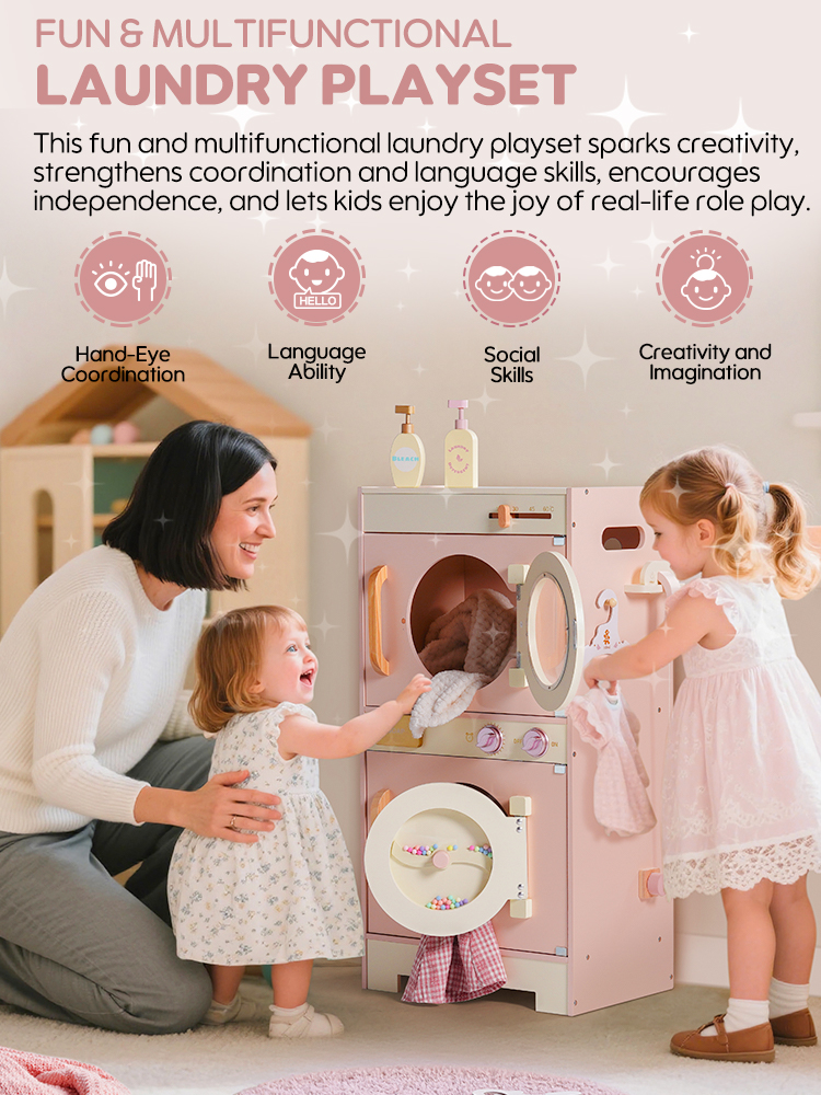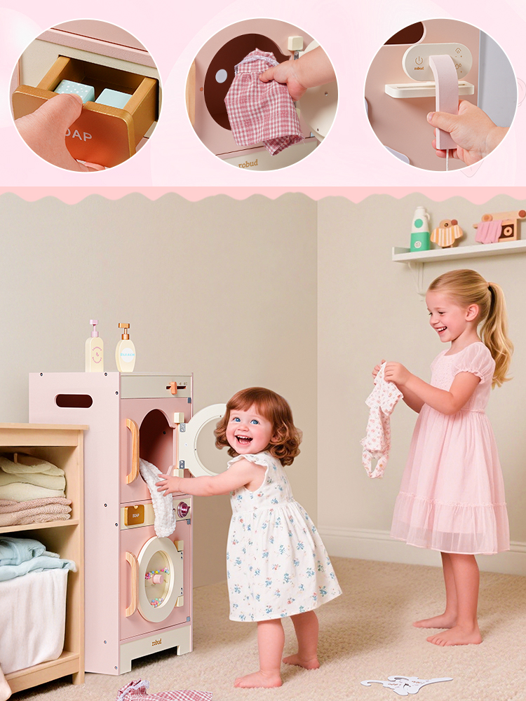 🔍Juguete Educativo Interactivo: No es solo un juguete, sino también una herramienta interactiva para ayudar a los niños a aprender habilidades básicas de lavandería. A través de actividades de lavandería simuladas, los niños pueden aprender conocimientos básicos sobre el lavado, y jugar con amigos puede mejorar aún más la interacción social.